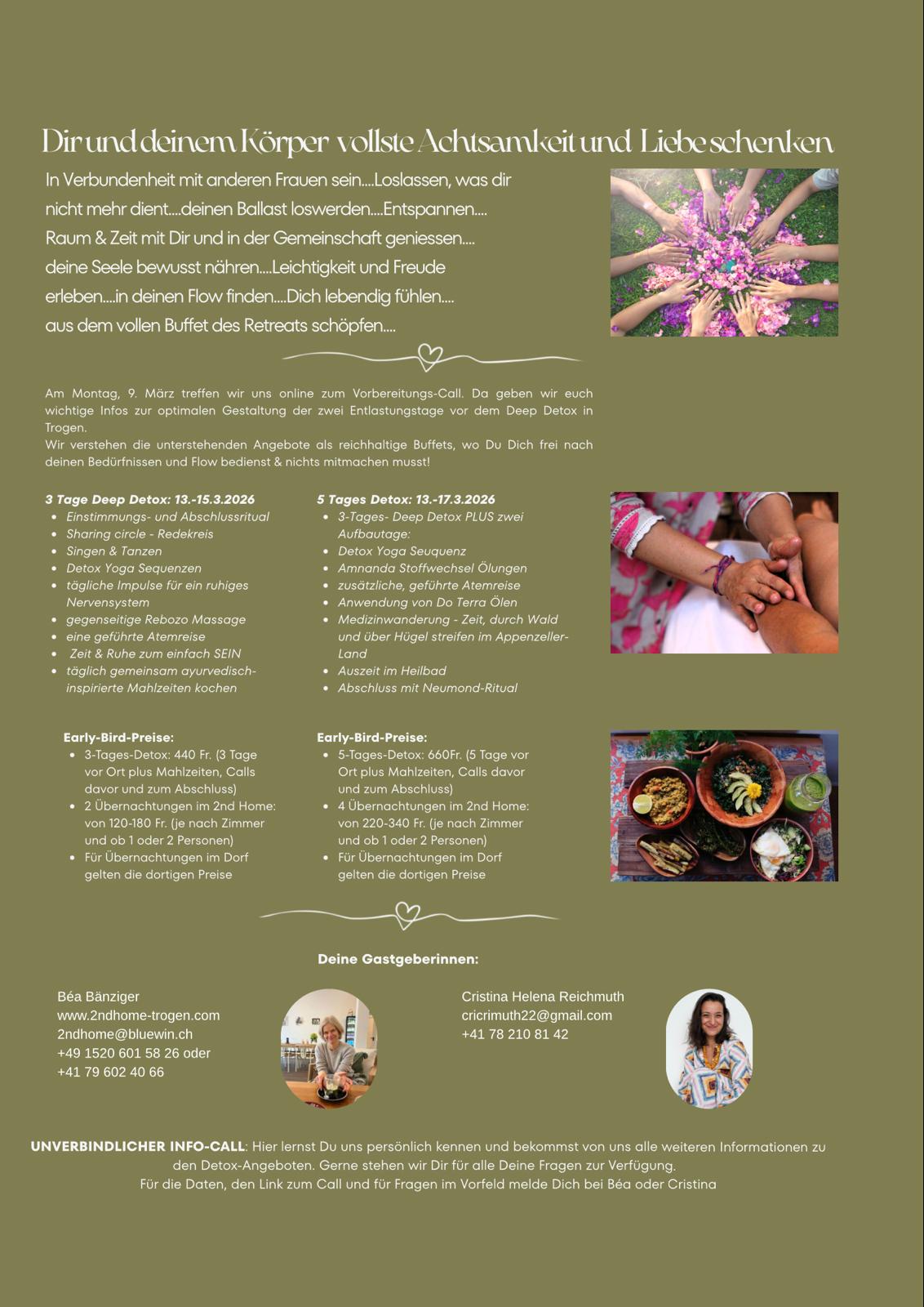 Nebst gemütlichen Zimmern, einem idyllischen Garten und einem köstlichen Frühstück kannst du weitere Angebote im Haus kennen lernen. Unser erstes Angebot:
